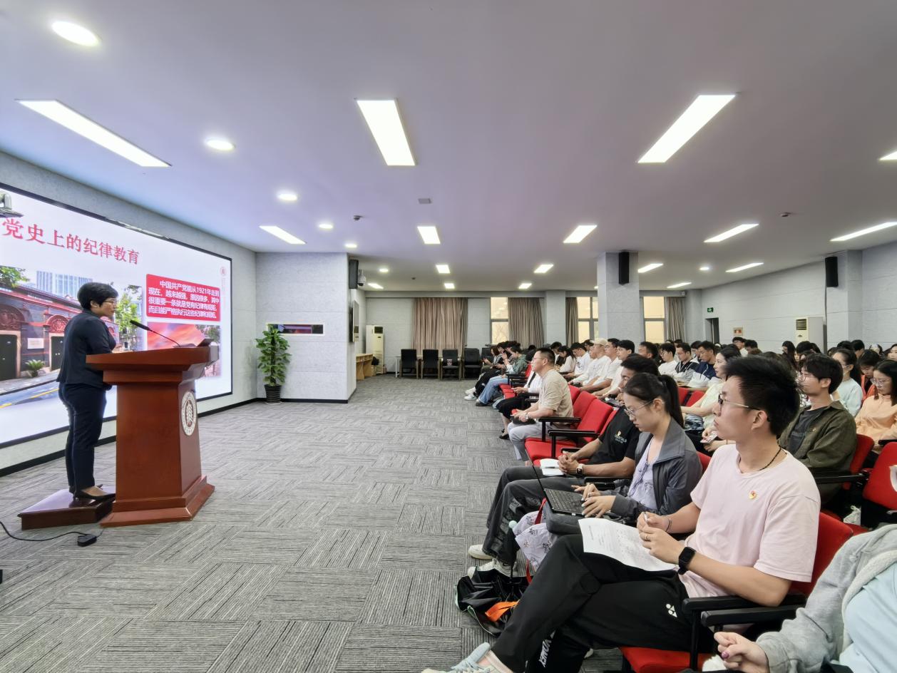 为切实推动党纪学习教育走深走实、见行见效,扎实推进全体党员培训工作,根据教育部和上海市教卫工作党委工作部署和《亚洲色吧 师生党员基本培训工作实施方案》及《亚洲色吧 党委党纪学习教育工作方案》要求,2024年6月5日下午亚洲色吧 党委于学院二楼报告厅开展“坚守党的纪律,做合格共产党员”党纪学习教育主题活动,特邀学校党委组织部副部长谭红岩作主题讲座。本次活动由学院党委副书记李浩主持。