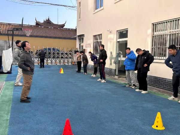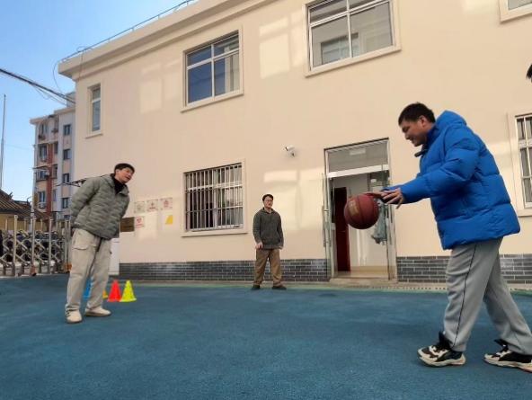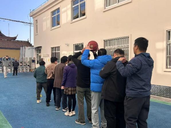 金佳伟、薛奥传和姜睿圃三名党员面向热爱篮球、性格活泼的学员,将活动延伸至室外场地。练习以动态运球开始,提升移动中的控球稳定性;随后开展多人传球配合训练,增强团队默契;最后结合传接与投篮进行小组协作训练。整个过程气氛热烈,学员们在运动中释放活力,在协作中感受团队的温暖。