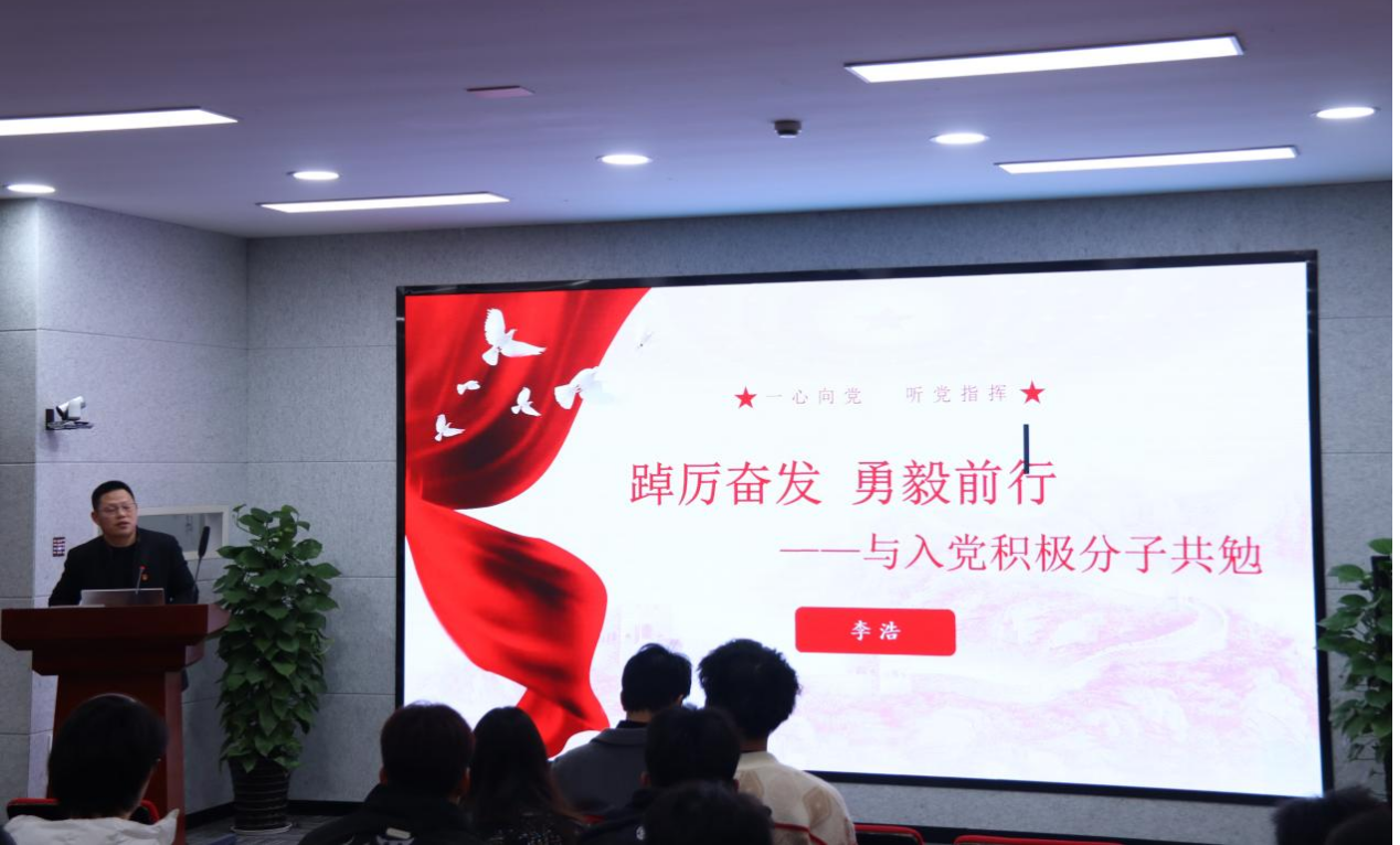 李浩指出,本次培训班是体健学子赓续红色血脉、勇担强国使命的重要成长阶梯。李浩在“踔厉奋发,勇毅前行”的主题党课中,以“历史之问”“时代之问”为切入,解码中国共产党百年奋斗的精神密码,聚焦“中国共产党为什么能”命题,从方志敏“可爱的中国”理想信念到焦裕禄治沙精神,从钱学森归国报效到雷锋服务情怀,阐释马克思主义真理力量如何通过“理论武装—精神传承—实践创新”三重路径转化为发展动能。针对“入党积极分子怎样才能行”,李浩强调,要绘制“成长-奉献-发展”的进阶图谱:既要“党员成长档案”量化理论学习成效,更要用“红色实践积分”丈量服务深度,在建设体育强国的赛道上跑出新时代青年的最美姿态。