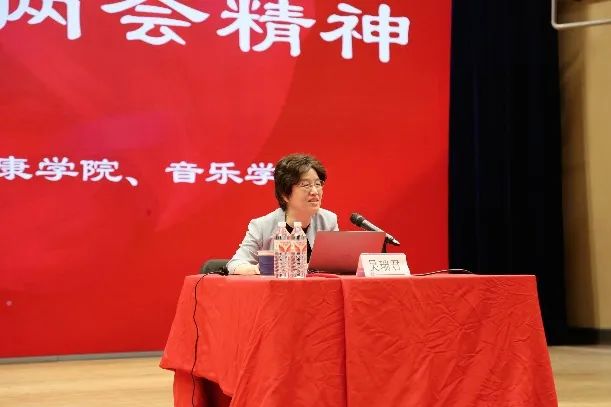 4月16日下午,为传达学习2025年全国两会精神,深入学习贯彻习近平新时代中国特色社会主义思想,助力教育强国建设,亚洲色吧 、传播学院、美术学院、音乐学院在闵行校区音乐厅联合举办全国两会精神专题辅导报告会,特邀全国政协委员、农工党亚洲色吧 委员会主委、图书馆馆长吴瑞君教授作专题报告,四家院系的全体教职工到会学习。报告会由音乐学院党委书记赵旌旌主持。