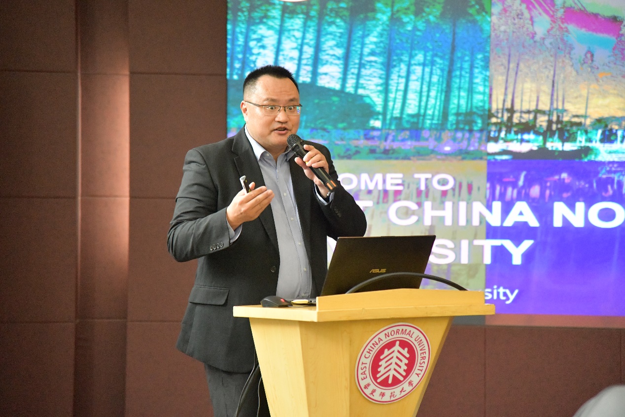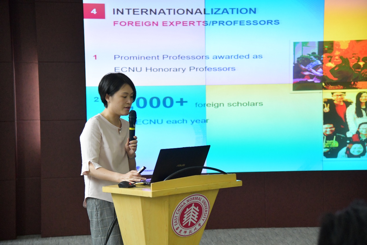 国际交流处项目负责人许诚向与会者介绍学校在国际化方面取得的成绩