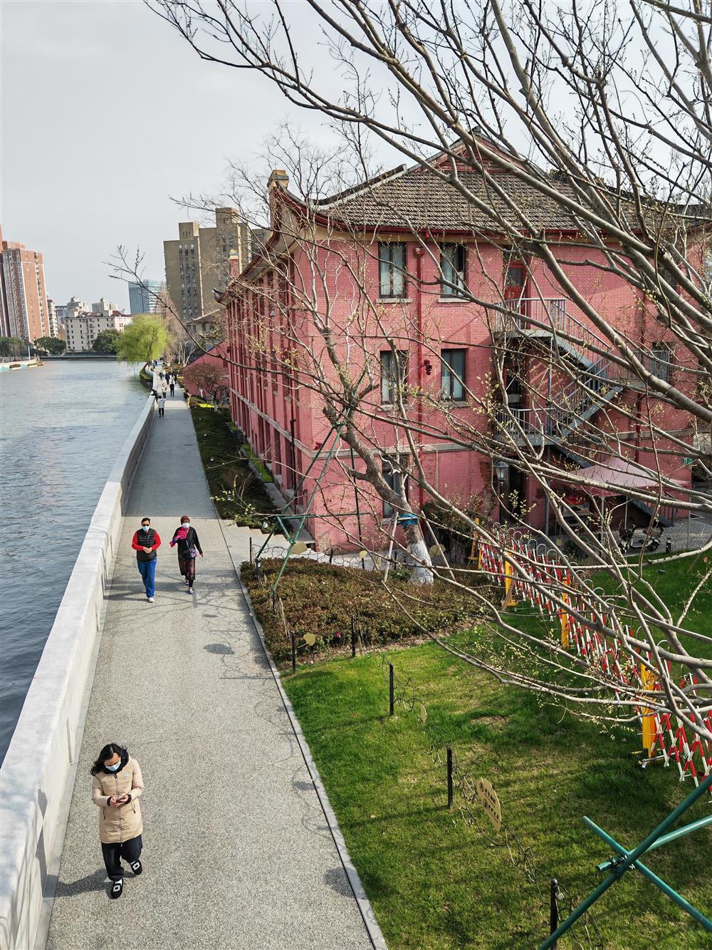 开春,市民游客在苏州河华政段步道漫步快走。徐瑞哲 摄