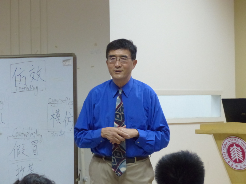 讲座在潘教授幽默诙谐的言语中拉开序幕。首先,潘巍教授针对如何界定创新和模仿的问题与大家讨论品牌的形成过程和价值意义。潘教授以自己的经历为例,讲述了不同国家的文化差异情况,从而说明文化差异对于不同国家的创新发展有着深刻影响。潘教授强调,厂家之间竞争产品,消费者形成和确定品牌,“对于厂家的品牌来说,只有融入和适应当地的文化才能有利于产业的发展。”讲座过程中,潘教授结合不同的产品案例进行讲解,说明了模仿产品出现的原因,并引导学生进行思考:到底什么样的模仿和创新是受法律保护的?之后,他从产品命名的原则、仿效的概念等角度一一作出了解释。