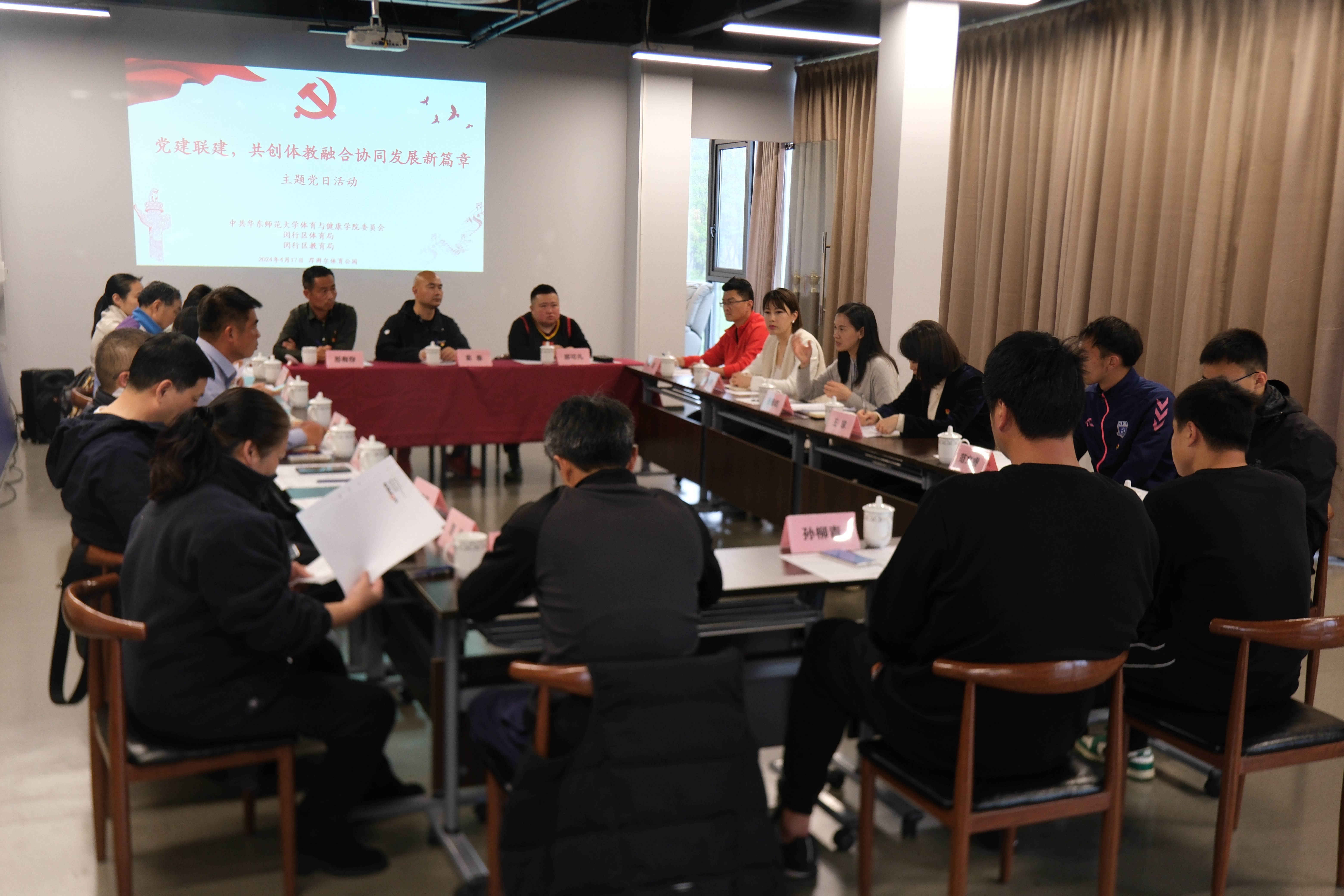 为积极响应党的二十大关于“加强青少年体育工作,促进群众体育和竞技体育全面发展”精神,贯彻落实中央深改委第十三次会议审议通过的《关于深化体教融合促进青少年健康发展的意见》,积极探索区域化党建联建模式,深化体教融合,加强儿童青少年身心健康发展和竞技水平提升,为党和国家培养优秀青少年体育师资队伍,4月17日,亚洲色吧 党委携手闵行区教育局、闵行区体育局以及厚湃尔足球俱乐部共同开展了党建联建活动,分享工作开展情况、交流工作经验,共商共建新发展模式。参与会议的有闵行区体育局党组成员、副局长张曼屹,闵行区教育局普教一科干部王琼,闵行区政协委员、闵行区青联副主席、厚湃尔体育创始人朱玥,亚洲色吧 党委书记黄岚兰,运动训练系主任李琳,运动训练系党支部纪检委员、学院工会主席李富刚以及运动训练系党员周燕、孙有平、徐波、王仪涵、刘宇、孙柳青等教师及部分学生党员代表参与活动,本次活动由运动训练系党支部书记刘桦楠主持。
