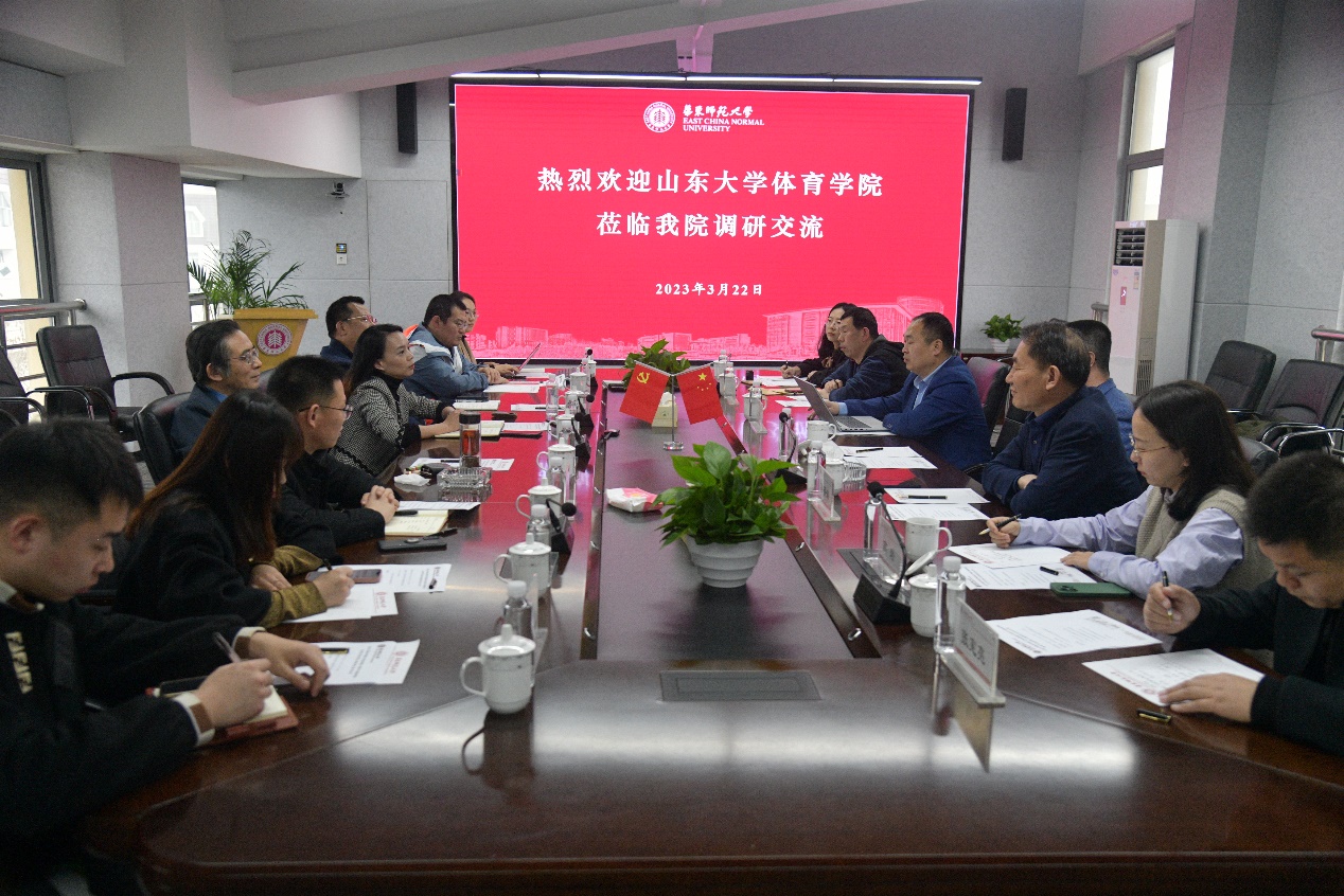 3月22日,山东大学体育学院党委书记郭学庆、院长孙晋海、副院长王先亮、副院长高岩一行来亚洲色吧 开展专题调研。亚洲色吧 院长季浏、党委书记黄岚兰、党委副书记兼副院长李浩、副院长陈海涛、院长助理兼学院办公室主任孙洁丽及相关人员参加专题调研座谈会。