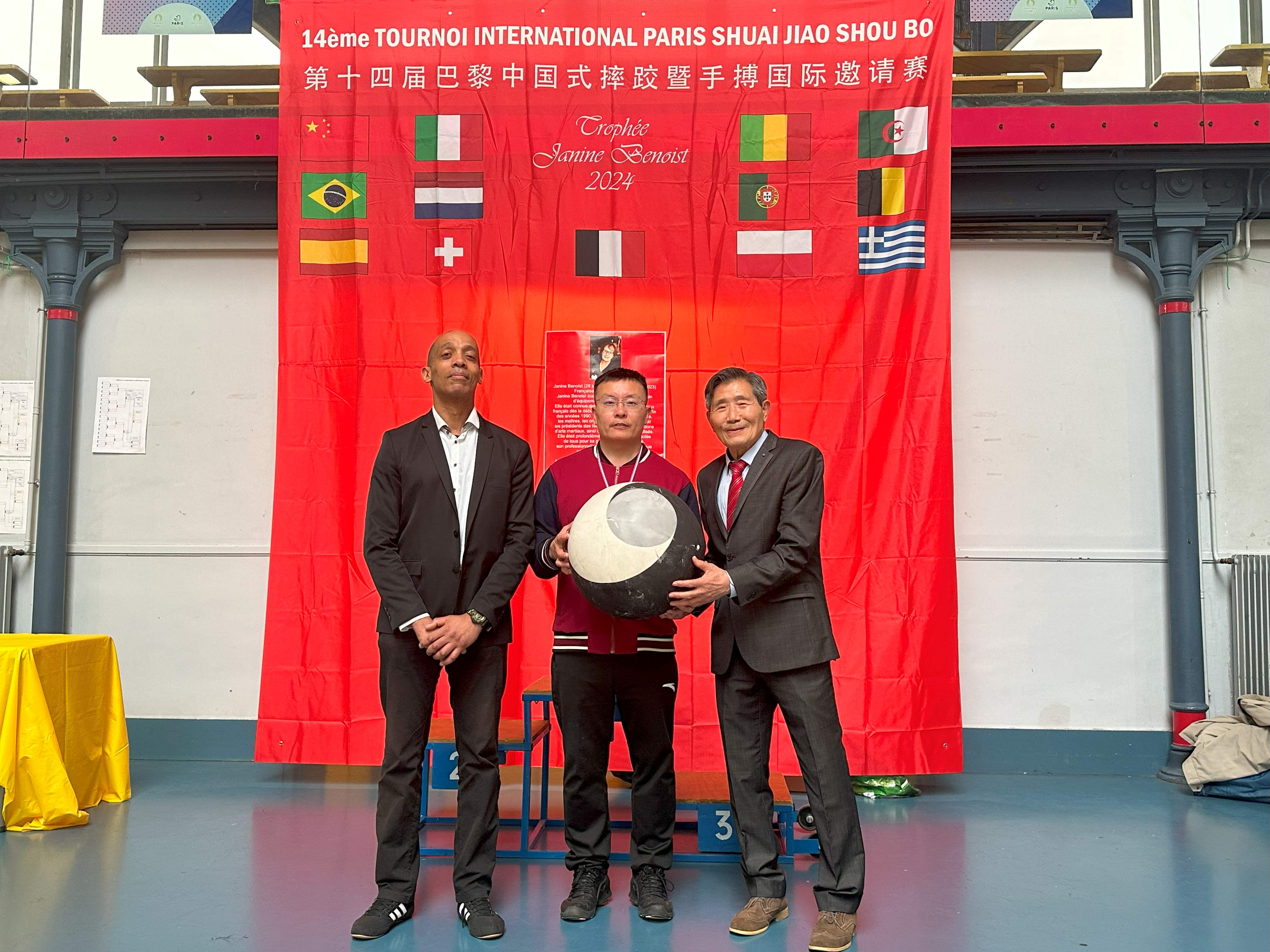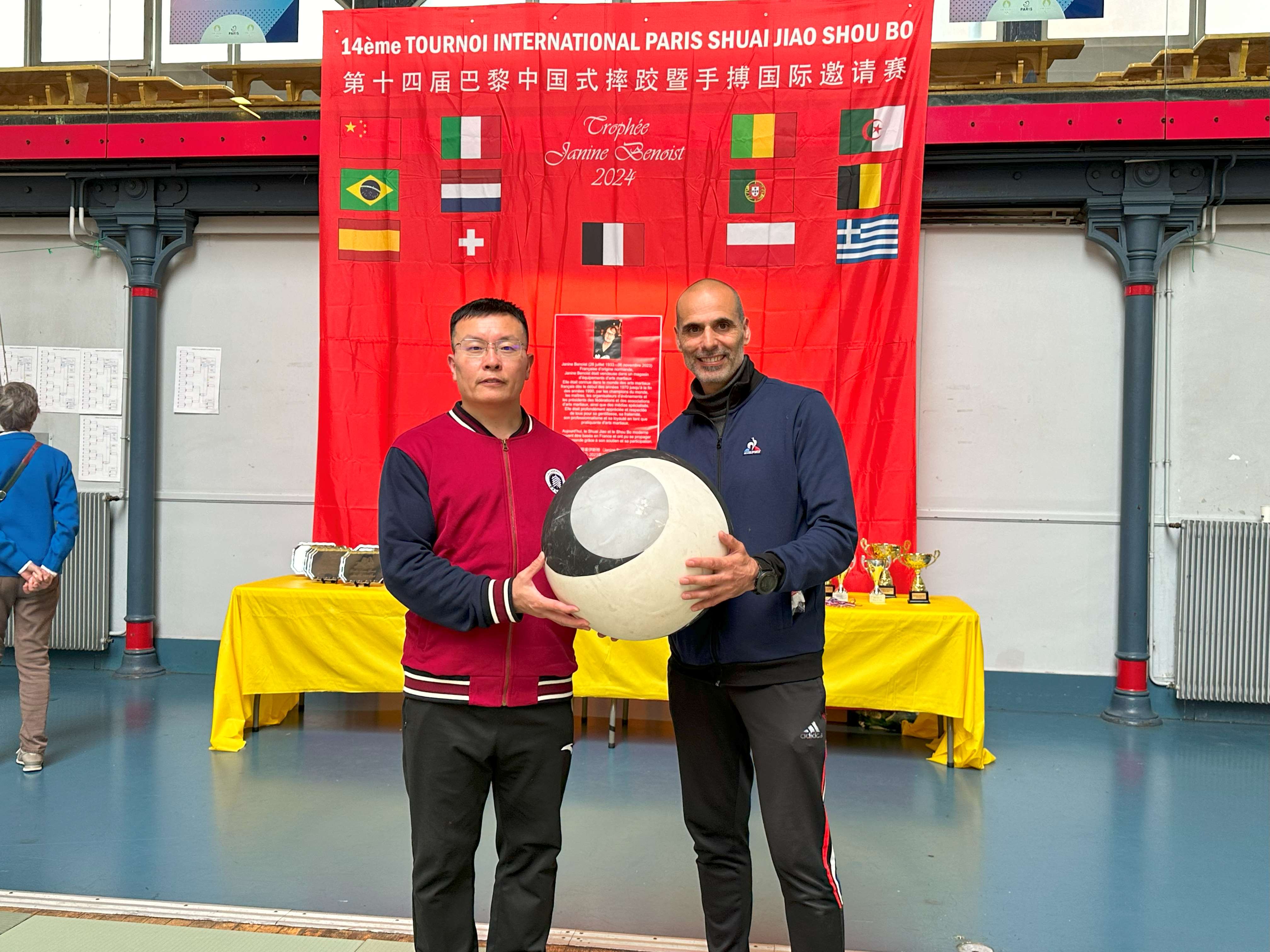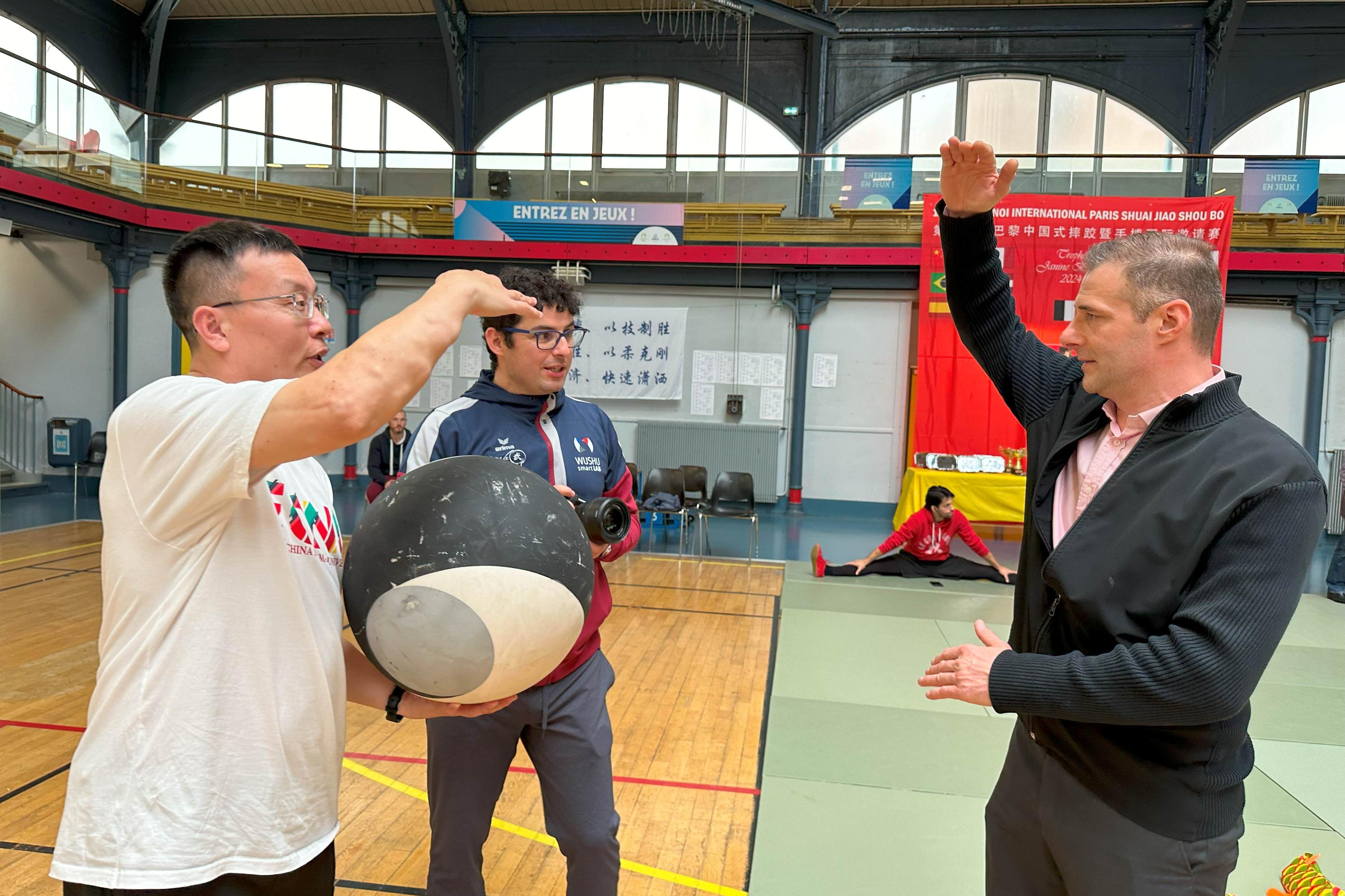 当地时间5月5日,在第十四届巴黎中国式摔跤暨手搏国际邀请赛开幕仪式上,杨建营教授和其团队成员——华东师大亚洲色吧 刘文武教授,以及博士研究生冯香红、彭国强受邀专门展示了太极球运动、中华武龙与太极拳。当地时间5月2日至6日,亚洲色吧 联合法国巴黎、里昂的12所大中小学、教育机构和体育俱乐部举办了系列人文交流活动。期间,华东师大亚洲色吧 民族传统体育学学科带头人杨建营教授为法国学生示范中国高校独创的太极球运动。