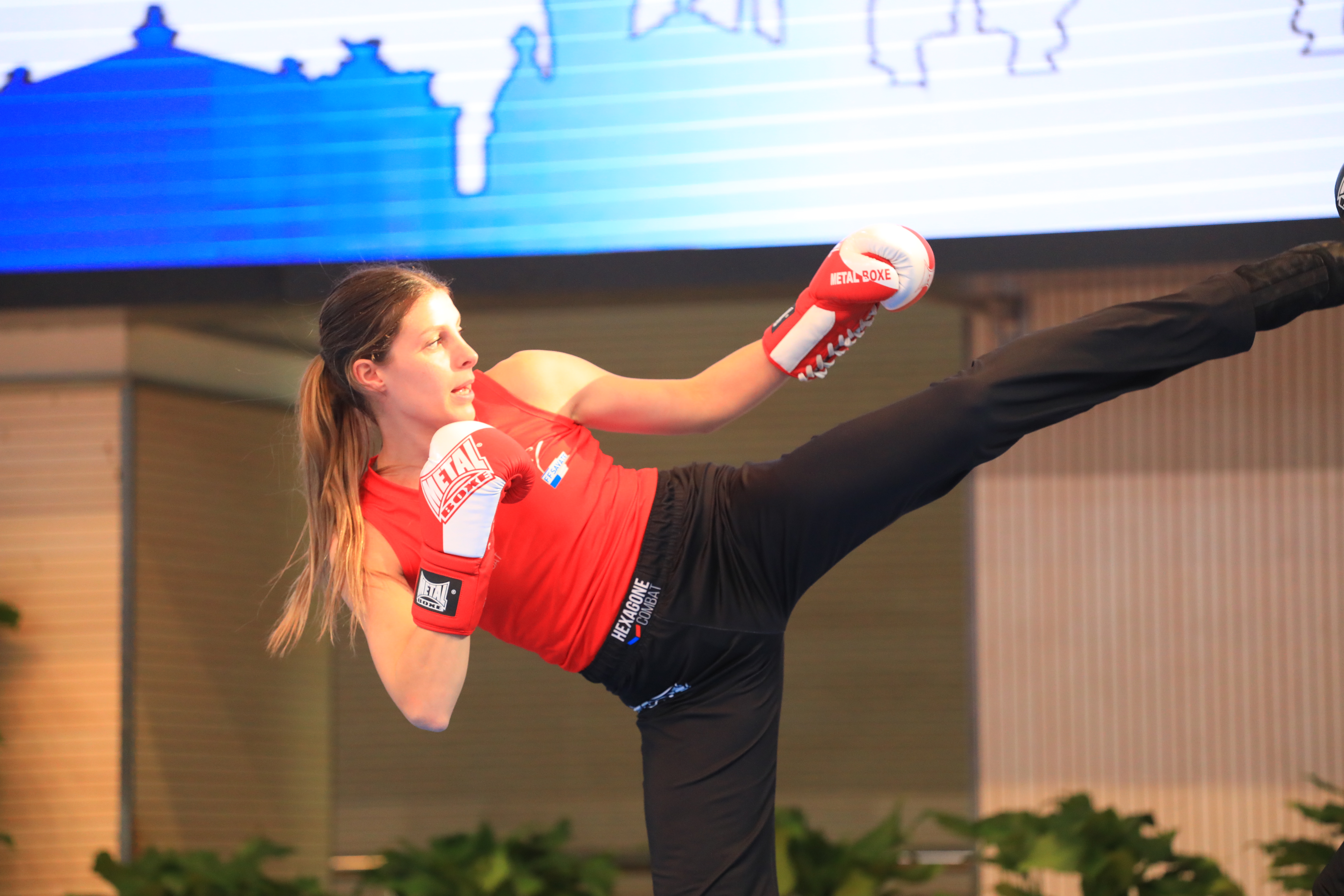 2024年3月24日,法式拳击冠军代表团到访亚洲色吧 ,一场别开生面的中法拳击世界冠军见面会在闵行校区举行,法式拳击世界冠军尼娜·贝尔康迪和阿米纳·费达尔共同登台展开了精彩的表演赛,展示了法式拳击的前后手直拳、踢击等要领动作。