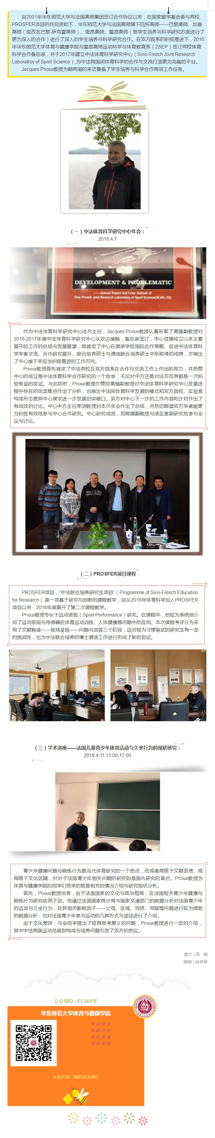 法国雷恩高师运动科学与体育教育系主任Jacques Prioux教授来亚洲色吧 系列活动
